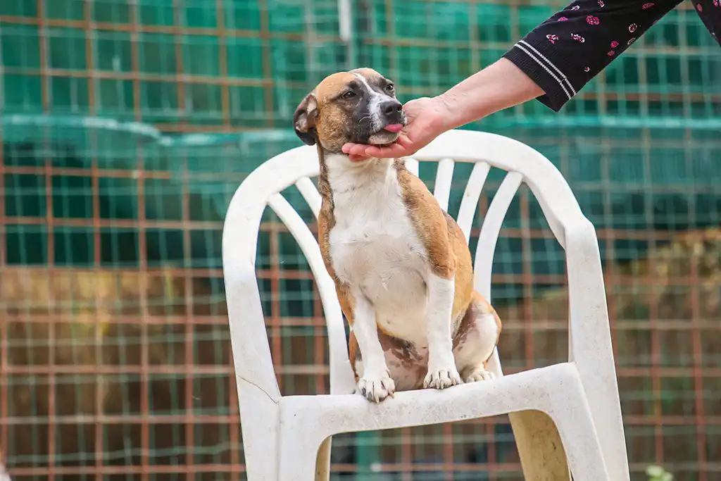 Karma è una gran peperina, mix Staffordshire con batterie inesauribili. Ha circa 2 anni e mezzo, vaccinata, sterilizzata, leishmania negativa. Compatibile con maschi calmi, sconsigliata con i gatti. Possibile supporto con educatore se ci fosse necessità.